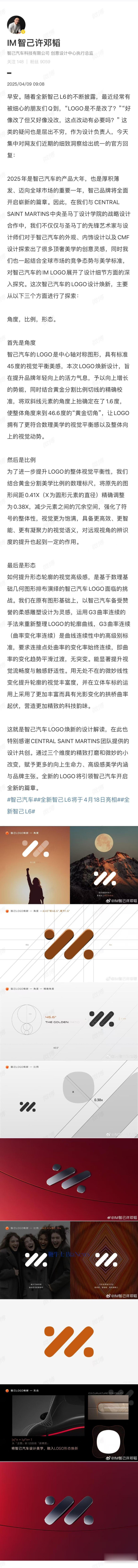 4月9日,智己汽车创意设计中心执行总监许邓韬在微博发文称,随着全新智己L6的不断披露,最近经常有被细心的朋友们Q到,“LOGO是不是改了?”“好像改了但又好像没改,这点改动有必要吗?”这类的疑问也是层出不穷。
